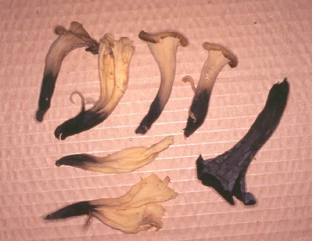 Craterellus cornucopiodes gul form av svart trumpetsvamp sällsynt förekommande