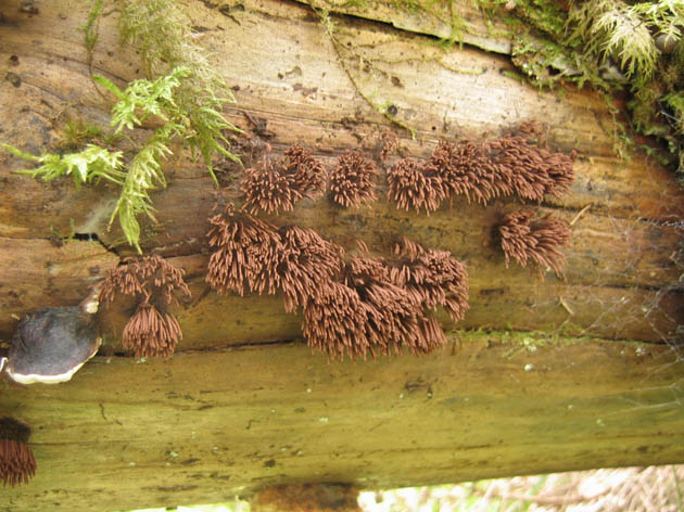 Stemonitis sp. vet inte vilken av de fyra arterna det är.Svampen är ingen riktig svamp det är en Myxomycet
