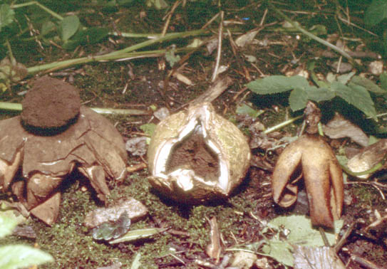 Tricaster melanocephala i alla utväcklingsstadier från v. Färdig stjärna, knopp som håller på att spricka upp, överblommat exemplar, från samma ställe som förra