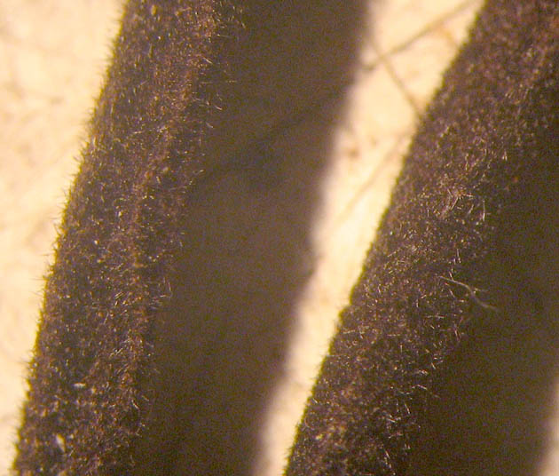 Trichoglossum variabile plåtad genom lupp så man ser hur hårig den är