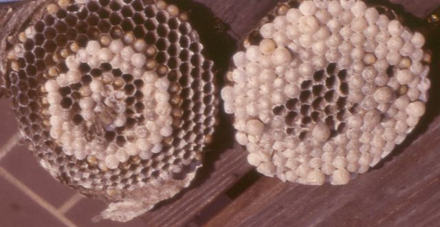 Getingar bygger bara på ena sidan av kakakn, bin på bägge